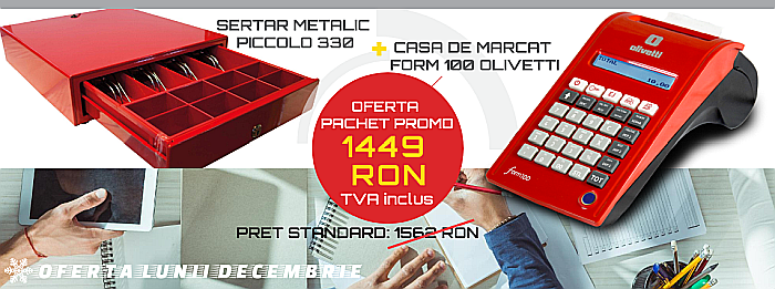 - Poate functiona in mod imprimantă fiscala (emitere bonuri prin conectare la PC)
