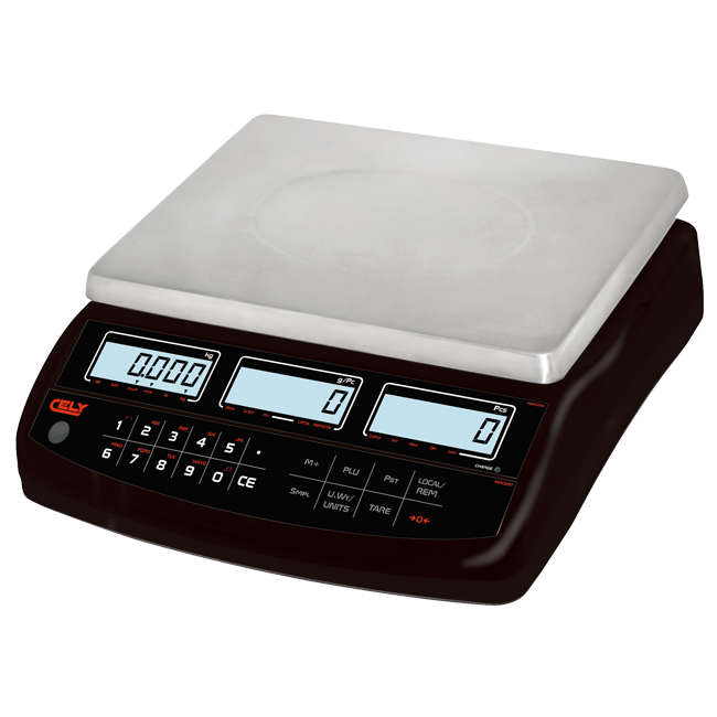 Cantarul numarator CELY PC-60 este special creat pentru operatiunile simple de cantarire: cantarire piese , control de greutate. Face parte din seria cantarelor fara imprimanta si fara comuncatii catre alte dispozitive. CARACTERISTICI PRINCIPALE Cantar comercial pentru cantarire, fara imprimanta Alimentare la priza si acumulator intern- Bateria are autonomie pana la 72 de ore, in functie de numarul de cantariri precum si conditiile de folosinta. Fara verificare metrologica Structura din plastic ABS 3 afisaje LCD iluminate, 6 digits Tastatura formata din 20 de taste Platan din inox Rezolutie interna 1/60.000 FUNCTII -cantarire -numarator piese -verificare greutate -tara automata -alarma verificare -aducerea automata la 0. CAPACITATE / PRECIZIE -30 kg/ 1 g FORMAT Fara brat DIMENSIUNI 315 X 330 mm Platan: 30 x 23 cm (l x L)