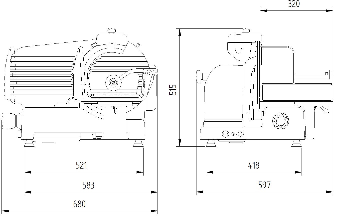 Feliator profesional 300 VK – Echipare standard Caracteristici principale Transmisie și sistem de tăiere Transmisie cu cutie de viteze pentru funcționare stabilă și durată mare de viață. Ascuțitor integrat, corect orientat și ușor de utilizat. Ergonomie și confort pentru operator Înălțime redusă de încărcare pentru diminuarea efortului operatorului. Cărucior cu suport zimțat și oscilant pentru resturi, fabricat din aluminiu. Design și igienă Materiale și finisaje Suprafețe din aluminiu ultralustruit pentru reducerea frecării. Canale de alunecare atent prelucrate pentru o curățare simplificată. Întreținere și curățare Ascuțitorul, apărătoarea lamei, deflectorul pentru produs și placa de carne sunt complet demontabile. Permite o igienizare facilă și completă, conform standardelor profesionale. Siguranță și conformitate Directive și standarde europene 2006/42/CE – Directiva pentru utilaje 1935/2004/CE – Materiale în contact cu alimentele 10/2011 UE – Materiale plastice pentru uz alimentar 2006/95/CE – Directiva de joasă tensiune 2011/65/UE – Directiva RoHS EN 1974:1998 – Igienă și siguranță pentru feliatoare EN 60204-1 – Siguranța utilajelor EN 55014 – Compatibilitate electromagnetică Certificare pentru contact cu alimentele Produs certificat FCMs (Food Contact Materials), în conformitate cu reglementările europene în vigoare. CARACTERISTICI TEHNICE 300 VK VE .specs-table { width: 100%; border-collapse: collapse; font-family: Arial, sans-serif; margin: 15px 0; background: #fff; border-radius: 10px; overflow: hidden; } .specs-table thead { background: #f2f2f7; } .specs-table th { text-align: left; font-weight: 700; padding: 12px 15px; font-size: 15px; color: #333; } .specs-table td { padding: 12px 15px; border-top: 1px solid #eee; font-size: 14px; color: #444; } /* Mobile responsive / stacked view */ @media(max-width: 600px) { .specs-table thead { display: none; } .specs-table tr { display: block; margin-bottom: 12px; border: 1px solid #eee; border-radius: 8px; } .specs-table td { display: flex; justify-content: space-between; padding: 10px 12px; border: none; border-bottom: 1px solid #eee; } .specs-table td:last-child { border-bottom: none; } .specs-table td:before { content: attr(data-label); font-weight: 700; color: #222; } } Caracteristică Valoare Dimensiuni totale 680 x 597 x 515 mm Zonă de instalare 521 x 418 mm Zonă de lucru 680 x 597 x 515 mm Diametru lamă 300 mm Viteză lamă 200 rpm Grosime felie 0 – 24 mm Protecție electrică IPX3 (Motor IPX5) Greutate netă 43 kg Cursă cărucior 300 mm Specificații electrice 220–230V / 340W c.a. monofazat; 220–230V / 380–400V / 230W c.a. trifazat; 120V / 60Hz / 340W c.a. monofazat Capacitate de tăiere Ø 210 mm – 250 x 190 mm
