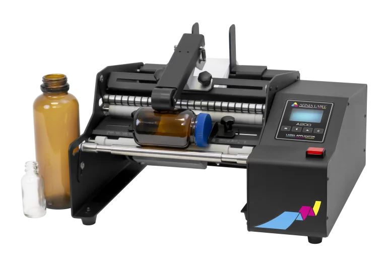 STS818 – Mașină Semi-Automată de Aplicat Etichete pe Recipiente Cilindrice STS818 este o maşină semi-automată profesională pentru aplicarea etichetelor autoadezive pe recipiente cilindrice cu pereți netezi. Concepută pentru producţii mici şi medii, această soluţie oferă capacitate de până la 800 bucăți/oră, în funcție de viteza operatorului și de dimensiunile recipientului. Maşina este echipată cu un senzor ultrasonic de detectare a etichetei, ceea ce permite utilizarea oricărei combinaţii între etichetă şi suport – de la hârtie, plastic, metalizat, până la etichete transparente cu suport transparent. Reglajele sunt minimizate pentru a facilita pornirea rapidă şi operarea simplă. Utilizând aceeaşi rolă, aparatul poate aplica simultan etichete pe faţă şi pe spate (mod simetric) al recipientului, ceea ce îl face ideal pentru sticle de vin, borcane cu produse alimentare, recipiente cosmetice, etc. Startul se face prin buton sau pedală — flexibil pentru linie de producţie. Specificaţii Tehnice Principale Diametru maxim rolă etichete: 200 mm Lăţime maximă etichetă: 220 mm Diametru interior miez rolă: 76 mm Productivitate: până la 800 bucăți/oră Compatibilitate: toate imprimantele de etichete Specificatii Complete Dimensiuni utilaj: 455 mm (L) × 245 mm (H) × 330 mm (A) Diametru recipient: 20 – 160 mm Lungime recipient: 30 – 300 mm Alimentare electrică: 100 – 240 Vac, 50 – 60 Hz Conectare: Cablu tip SHUKO Consum propriu: < 100 VA Lăţime etichetă/rolă: 25 – 220 mm Lungime etichetă: 25 – 500 mm Spaţiu între etichete: > 2,5 mm (recomandat 4 mm) Greutate: 15 kg Culoare: Albastru / Alb / Negru