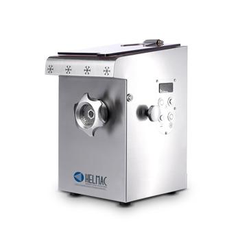 Masina de tocat carne compacta CRH10 inox 300 kg cu refrigerare Masina de tocat carne compacta, realizata in intregime din inox, ideala pentru pozitionare pe bancul de lucru. Sistem de tăiere ENTERPRISE (tăietură unică), dimensiunea 22. Unitate frigorifica, temperatura constanta autoreglanta la 3°C.Extrem de usor ded demontat si curatat.Masini de tocat carne cu refrigerare pentru uz profesional, esențiale pentru măcelării, restaurante, hoteluri și cantine. Ideale pentru a toca ușor cantități mici și medii din toate tipurile de carne și pentru tocarea legumelor pentru supe. Rezultatele procesării alimentelor sunt perfecte si curatarea masinilor este extrem de usoara. CARACTERISTICI TEHNICE Usor de demontat si curatat Alimentare: Trifazica 400 V / 50 Hz Putere: 1.1 kW (1.5 CP) Dimensiuni tavita de incarcare: 120 x 110 mm Capacitate de lucru: 300 kg / ora Greutate: 45 kg Dimensiuni (wxdxh): 419 x 363 x 567 mm Producator: HELMAC Italia