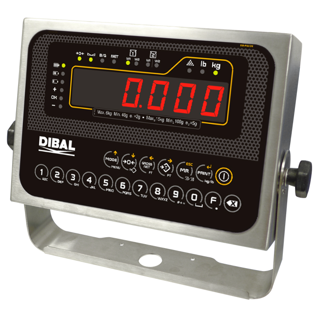 Indicator de greutate Dibal DMI-620 ideal pentru functii multiple in procesele de cantarire (numarator piese, verificare greutate, dozare…), conectabil pana la 2 platforme, cu pana la 14 celule.Funcții remarcabile Greutate-tare-acumulare. Numărarea pieselor. Verificare greutate (minim-țintă-maxim). Tara programabilă (până la 10). Salvari nr de cântăriri (până la 1.000). Dozare: 1 produs / 2 viteze (cu 4 opțiuni de intrare / ieșire). Verificare greutate (cu 4 intrare / ieșire opțiune). 1 sau 2 platane opționale. Ieșire analogică 4-20 mA / 0-10 V (opțional). Ceas în timp real alimentat de baterie. Baza de date pentru 400 de PLU-uri (produse) si 400 de inregistrari (clienti, furnizori, operatori...). Memorie de stocare internă opțională. Repetor. CPU Procesor/ Microprocesor: ARM 32 bit cortex M3. Memorie: 256 Kb Flash si 48 Kb RAM. Cântărire Conectarea la 1 platformă de cântărire de până la 14 celule de sarcină. (Conexiune la a 2-a platformă – până la 14 celule de încărcare–, opțional). Aliniere: până la cinci puncte de ajustare. Până la 6.000 de divizii. Mono-range, multi-range sau multi-interval. Construcție Structură: Oțel inoxidabil AISI 304. Tastatura si afisaj: Tastatura cu 19 taste si afisaj LED cu 6 cifre rosii (1" - 25,4 mm). Indicatori ai modului de lucru: greutate (kg, lb), numarator piese, verificare greutate... Suport reglabil cu unghi pentru masă sau perete inclus. Comunicare cu PC 2 porturi RS-232, unul dintre ele cu putere proprie (5 V / 500 mA). RS-485/RS-422 (opțional). Ethernet (TCP/iP și UDP) (opțional). Port USB (opțional). Wi-Fi (opțional). Mai multe protocoale de comunicare disponibile (contactați-ne). Software PC DCM: Configurarea indicatorului și copierea de rezervă. Gestionarea și prelucrarea datelor colectate de indicator. Alimentare 110-230 VAC direct. Baterie reincarcabila interna (Li-ion) optionala: Durată de funcționare de până la 44 de ore (în funcție de condițiile de utilizare). Posibilitate integrare cu alte echipamente Etichetator manual Dibal LP-500 Repetor Cely RD-5 (sau alt repetor DMi). Alte conexiuni posibile Imprimantă externă (protocol Epson), pentru tipărirea rapoartelor. Alte dispozitive, cu opțiunea 4 intrare/ieșire. Consum de energie 20 W (aprox.).