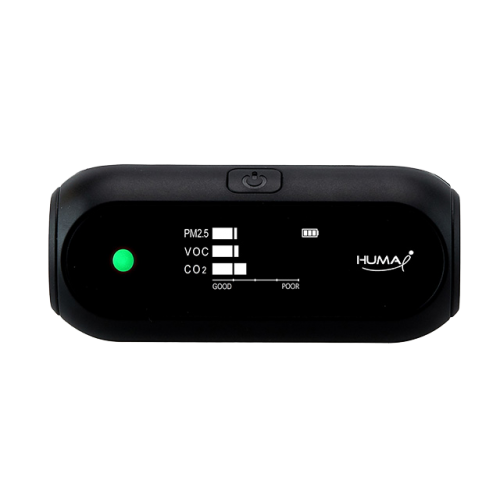 5 in 1 - Monitor Portabil Masurare a Calității Aerului pentru CO2, VOC, Particule Praf, Temperatura și Umiditate -Huma-i BLACK- Hl-150Huma-i este un monitor portabil de detectare a calității aerului, cu module de senzori de cea mai inalta calitate, proiectate pentru masuratori de inalta precizie. Masoara particulele de materie, fine si ultra-fine din aer (PM10, PM2.5), nivelurile de dioxid de carbon (CO2) si compuși organici volatili (VOC), plus temperatura si umiditatea aerului.Modul ICON usor de utilizat inseamna ca utilizatorul nu trebuie să fie familiarizat cu nivelurile fine de praf, iar portabilitatea și sensibilitatea designului inseamna ca il poti transporta cu tine oriunde.Cel mai de incredere. Portabil. PersonalMonitor Calitate Aer, Huma-i Black (Hi-150)Molecule Invizibile CriticeUcigasul invizibil care ataca in liniste.Deoarece schimbarile climaterice si dezvoltarea industriala sporita ameninta calitatea aerului, aerul curat care consideram ca ne revine de drept, se schimba zi de zi. Aerul pe care il respiram este un amestec complicat, care de multe ori contine particule nocive atat de mici, incat este nedetectat de majoritatea senzorilor.O poveste despre Huma-IESTE AERUL PE CARE IL RESPIRI SIGUR?Huma-i s-a gandit la preocuparile majore ale mamelor, in special ale mamelor cu copii mici al caror sistem imunitar este un pic mai slabit. Una dintre preocuparile lor este, in mod clar, sa ofere copiilor lor siguranta si sanatate.Cu toate acestea, numarul deceselor anuale cauzate de poluarea aerului creste, din pacate, in fiecare an.Conform OMS (Organizatia Mondiala a Sanatatii), numarul de decese cauzate de poluarea aerului din interior depaseste numarul celor cauzate de poluarea aerului din exterior.In timp real, oricine poate verifica confortabil, oriunde, calitatea aerului.Pentru familia meaViata sanatoasa.In ziua de astazi sa ramai in interiorul casei nu mai este în siguranta. Iata solutia propusa de Huma-i.Huma-i permite mamelor sa vada criminalul invizibil, poluarea aerului, masurand calitatea aerului oricand si oriunde, imediat. Huma-i ajuta mama si bebelusul, cel putin din perspectiva aerului poluat, sa aleaga sa traiasca intr-un mediu sigur si sanatos. Asadar, va recomandam sa acordati atentie in cautarea de solutii sanatoase impotriva pericolelor mici, invizibile, pentru familia si cei dragi Dvs.Huma-i va permite sa monitorizati aerul pe care il respirati, indiferent unde va aflati.Senzorii de ultima ora ai monitorului, brevetati, sunt adapostiti intr-o carcasa extrem de portabila, bine finisata, cu un afisaj atat de intuitiv, incat orice copil poate intelege masuratorile.Nu-i lasa pe cei dragi sa nu cunoasca informatii despre aerul care ii inconjoara, fie ca sunt acasa, in aer liber sau in strainatate. La plimbare cu copilulCand va aflati impreuna cu familiaCu bicicletaLa joggingIn spatii inchise: in casa, birou, scoala, gradinita etc.Mai multe despre Huma-i:Mic dar cu functii superioareHuma-i este prevazut cu senzori de inalta calitate dezvoltati in-house și produsi in Coreea, asigurand cele mai precise citiri ale calitatii aerului si o durata de viata indelungata. Produsul este cel mai portabil, cel mai serios monitor al calitatii aerului de pe piata, astfel incat nu este de mirare ca este lider de piata in Coreea de Sud.Masuratori precise si portabilitate convenabilaMasoara nivelul de Dioxid de Cabon (CO2) si Compusi Organici Volatili (VOC)Masoara Particulele de Materie Fine si Ultra-fine (PM2.5 & PM10)Masoara Temperatura si UmiditateaPortabil, de buzunar.SPECIFICATIIProdus: Monitor Portabil Calitate AerModel: Huma-i Black (Hl-150)PMInterval de măsurare : 0~500 μg/ m3 { (PM2.5 / P M10)Rezoluție : 1 μg/ m3VOCInterval de măsurare: 0.000 ~ 10.000 ppmRezoluție : 0.001 ppmCO2Interval de măsurare: 400 ~ 10,000 ppmRezoluție : 1 ppmAlimentare: Baterie Li-PolymerMod Incărcare: micro USB 5 PinDimensiuni: 91 X41 x37 mmGreutate: 60 gCertificări: FCC CEProdus in KoreaDimensiuni:Detalii si instructiuni de utilizare① Tasta selectare Pornire si ModTasta PornireDaca apasati tasta timp de 1 secunda, monitorul va intra in mod de pornire. Se opreste automat daca nu este utilizat timp de 10 minute pentru a proteja durata de viata a bateriei. LED-ul de stare va clipi cu 1 minut înainte de oprirea automata. În acest moment, daca apasati usor tasta, monitorul va sta pornit din nou timp de 10 minute, iar modul nu se va schimba.Tasta Selectare ModLa fiecare apasare a tastei Mod, modul Afisaj se va modifica ciclic in urmatoarea ordine:Mod Afisaj Integrat (PM2.5 / VOC / CO2) => Mod WHO (OMS) => Mod PM (PM2.5 / PM10) => Mod VOC => Mod CO2 => Mod Temperatura/Umiditate② Stare LED Starea LED indica statusul pentru CO2, VOC si PM fine si ultra-fine.③ Mod afisajMod afisaj integratEste indicat intr-un grafic pas-cu-pas astfel incat calitatea aerului poate fi evaluata mai usor fata de modul de citire prin cifre. PM2.5, VOC si CO2 pot fi vizualizate pe un ecran. Graficul cu 4 pasi arata calitatea aerului – good (buna), moderate (moderata), poor (slaba) and unhealthy (nesanatoasa).Mod WHO (Mod OMS)Puteti recunoaste usor starea buna sau slaba a particulelor de praf gasite, prin cele 4 tipuri de simboluri.Mod afisaj PM (Particule Materie): Afiseaza simultan valorile masurate PM2.5 si PM10.Mod Afisaj VOC (Compusi Organici Volatili): concentratia de VOC este afisata impreuna cu cifrele exprimate in unitati ppm.Mod afisare CO2: concentratia de CO2 este afisata in unitati ppm.(* In cazul CO2 si VOC, valoarea este afisata dupa 15 ~ 60 secunde de la pornire, dupa care valoarea estes actualizata in fiecare secunda).Mod Temperatura/Umiditate: Indica temperatura si umiditatea pe afisaj.(* In cazul temperaturii si umiditatii, senzorul de temperature/umiditate se afla in interiorul produsului si poate avea abateri de 5 ~ 10%).④ Afisare status BaterieAcest simbol indica statusul bateriei ramase.Mod de utilizareHuma-IVa ghideaza sa alegeti locurile cu aer curat SFATURI UTILE PENTRU SANATAT