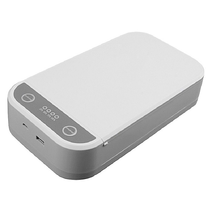 CUTIE STERILIZARE UV-C, MULTIFUNCTIONALA Cutia pentru sterilizare cu ultraviolete UV-C este ideala pentru dezinfectarea telefoanelor si obiectelor mici prin distrugerea bacteriilor si virusurilor. Cum functioneaza? Practic, cu ajutorul luminii ultraviolete UVC structura ARN a bacteriilor si virusurilor va fi rupta, ducand la moartea acestora si incapacitatea de a se mai reproduce. Cutia este prevazuta cu 2 leduri UVC cu putere 2W, cu lungime de unda de 254nm ce asigura o rata de sterilizare de pana la 99.99%. Cutia pentru dezinfectare cu UVC are 2 functii, accesibile prin cele 2 butoane pozitionate pe capac, pentru sterilizare si aromaterapie. Functia de Sterilizare se activeaza prin apasarea unui singur buton. Puteti urmari progresul procesului de sterilizare prin ledurile indicative pozitionate pe capac. Timpul necesar de sterilizare este de 5 minute. Finalizarea procesului de sterilizare este indicata atat vizual prin ledurile de pe capac, cat si sonor. Functia de Aromaterapie pentru dispersie uleiuri esentiale. Turnati cateva picaturi de ulei esential in lacasul dedicat si puteti dezinfecta obiectele dar si parfuma cu aroma preferata. Timpul total de sterilizare cu functia de aromatizare activata este de 8 minute. Aplicatii multiple – ideala pentru sterilizarea obiectelor mici: masti de protectie, telefoane mobile, chei, ochelari, ceasuri, bijuterii, casti, bancnote, pensule de machiaj, alte accesorii etc. Compacta si portabila, cutia pentru sterilizare cu UVC este foarte usor de transportat in geanta si depozitat in casa, birou, masina, in calatorii etc. Atentie! Nu expuneti pielea la radiatiile UVC, evitati contactul cu ochii, lampa UVC este destinata exclusiv sterilizarii obiectelor mici! Nu introduceti mana in cutie si nu lasati capacul deschis in timpul sterilizarii! A nu se lasa la indemana copiilor! Caracteristici: lungime de unda UV-C: 254nm putere lampi UVC: 2W durata de viata: 10000h alimentare: port USB tensiune DC 5V dimensiuni cutie: 225*125*40 mm dimensiuni interior: 180*103*30 mm greutate: 300 gr culoare alb. certificate: CE, ROHS, SGS, FCC cod produs: UV-3260