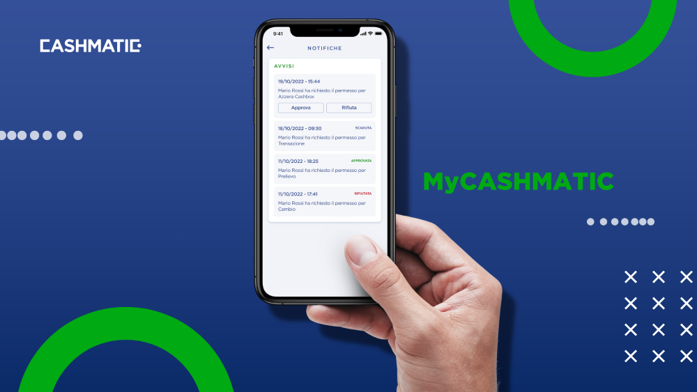MyCashmatic APP - Aplicația Cashmatic pentru controlul de la distanță al punctului de incasareO singură aplicație pentru a vă monitoriza de la distanta, de pe telefon sau tableta, toate punctele de incasare numerar, chiar si monitorizarea mai multor puncte de vanzare. Notificări automate în timp real pentru controlul fiecarei operatiuni sensibile din punctul de incasare.Monitorizați nivelurile tuturor fondurilor de numerar dintr-o singura privireMonitorizarea si gestionarea tuturor retragerilor si depunerilor Grafice cu tendințele încasărilor și raport automat de închidere a numeraruluiDetalii operationale ale dispozitivului si perifericelor sale